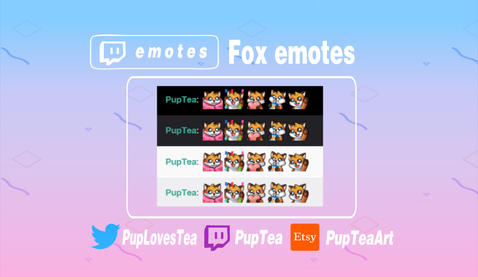 Fox emotes for you to use as Twitch or Discord emotes! Perfect for new affiliates on Twitch!